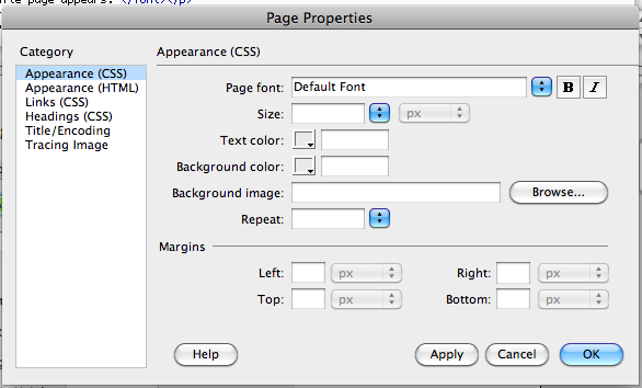 of the Property Inspector Window (fig. B). Note that you will now need to understand CSS to work with this panel.
